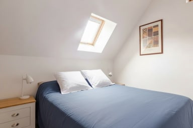 The landing area can accommodate one or two additional guests thanks to a sofa bed (160 cm when unfolded). A curtain system allows this space to be separated, creating a private and comfortable sleeping area.