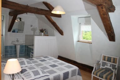 The Pressoir gîte sleeps 5 to 7 people with its two bedrooms and a sofa bed in the living room.