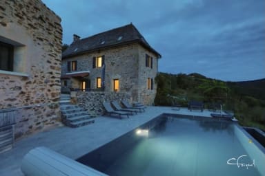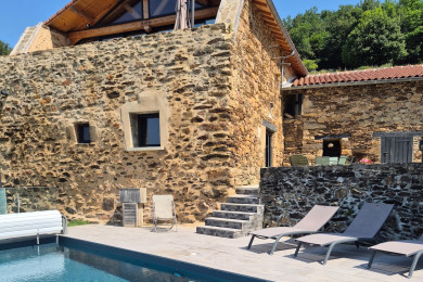 Aubié se situe dans un hameau de 5 maisons, au calme, sans vis à vis, avec une vue dégagée sur la vallée, une immense terrasse donnant sur la piscine à débordement accessible et chauffée du 30 mai au 15 septembre.