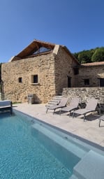 La propriété est composée de 2 maisons en pierre reliées par une grande terrasse qui donne sur la piscine, toutes les pièces sont climatisées.
