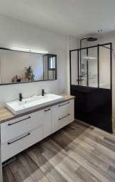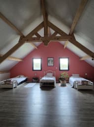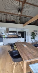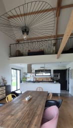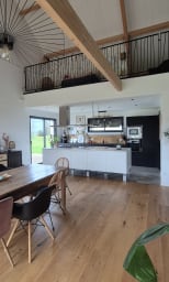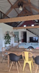 La maison est composée d'une entrée, d'un grand séjour, salle àmanger, une cuisine tout équipé a laquelle est attenant un cellier/buanderie avec tout le nécessaire (machine a laver, sèche linge...). Elle dispose de 3 chambres de plain pied ( 2 avec un lit en 160x200 et 1 avec un lit en 90x 190), une salle de bain et un toilette. L'étage est composé d'une grande mezzanine de 80m2 dans laquelle il y a un espace enfant, avec 3 lits en 90x190. La maison est implantée sur une parcelle d'environ 4000m2, elle dispose d'une grande terrasse pour profiter de l'extérieur.